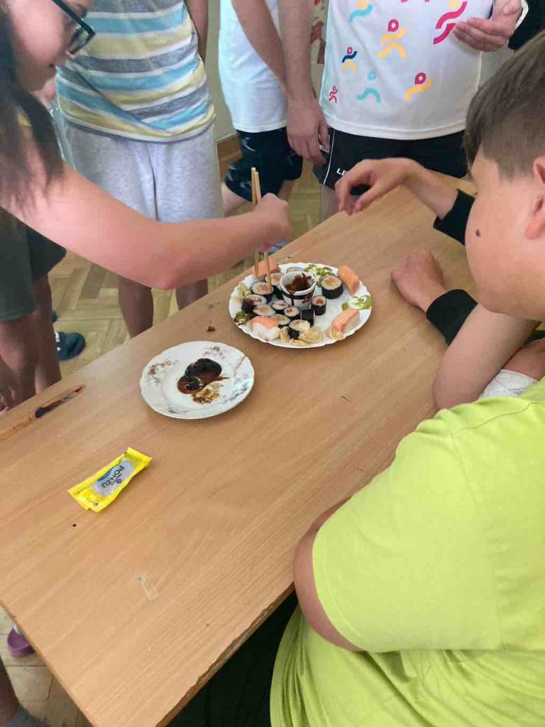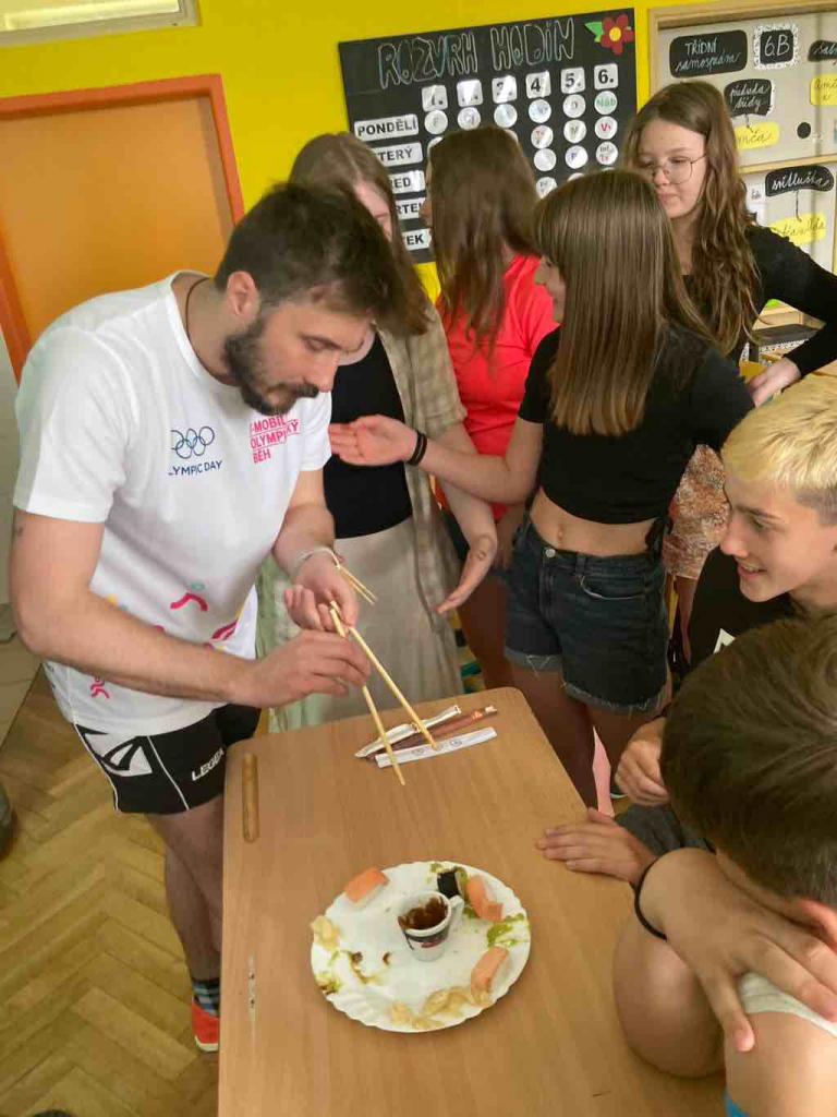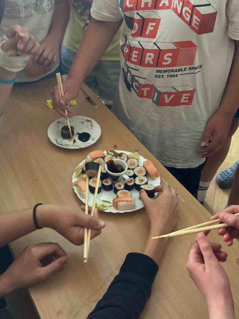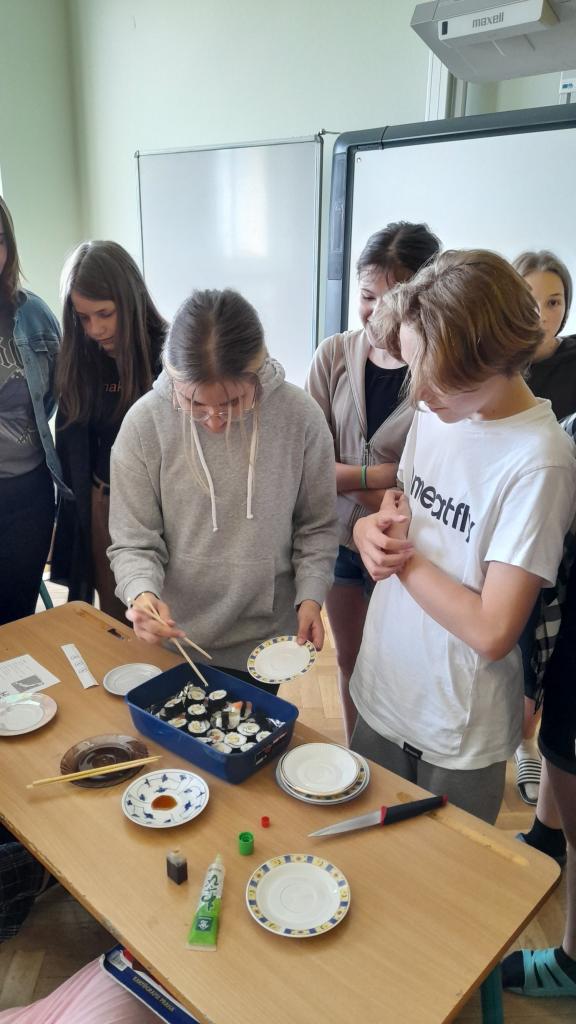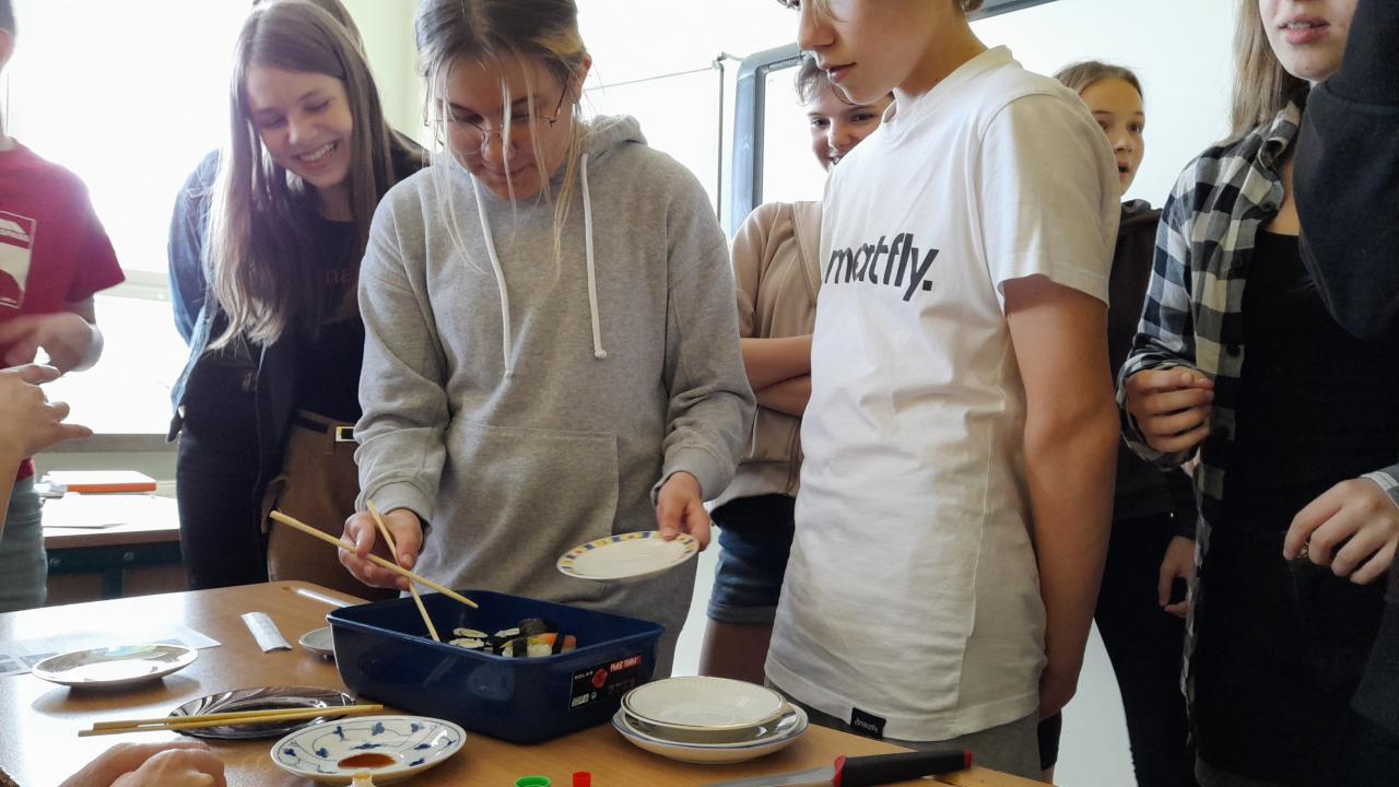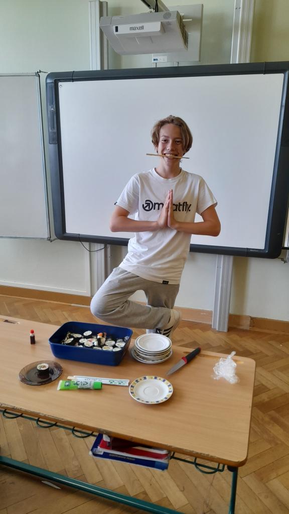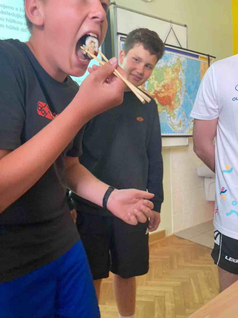 V hodině zeměpisu jsme si zpestřili výuku Japonska tradičním japonským pokrmem SUSHI. Jedli jsme jej klasickou asijskou metodou, čili hůlkami a tak některým chvíli trvalo než se naučili malé kousky vkládat do úst, posuďte sami ve fotogalerii.