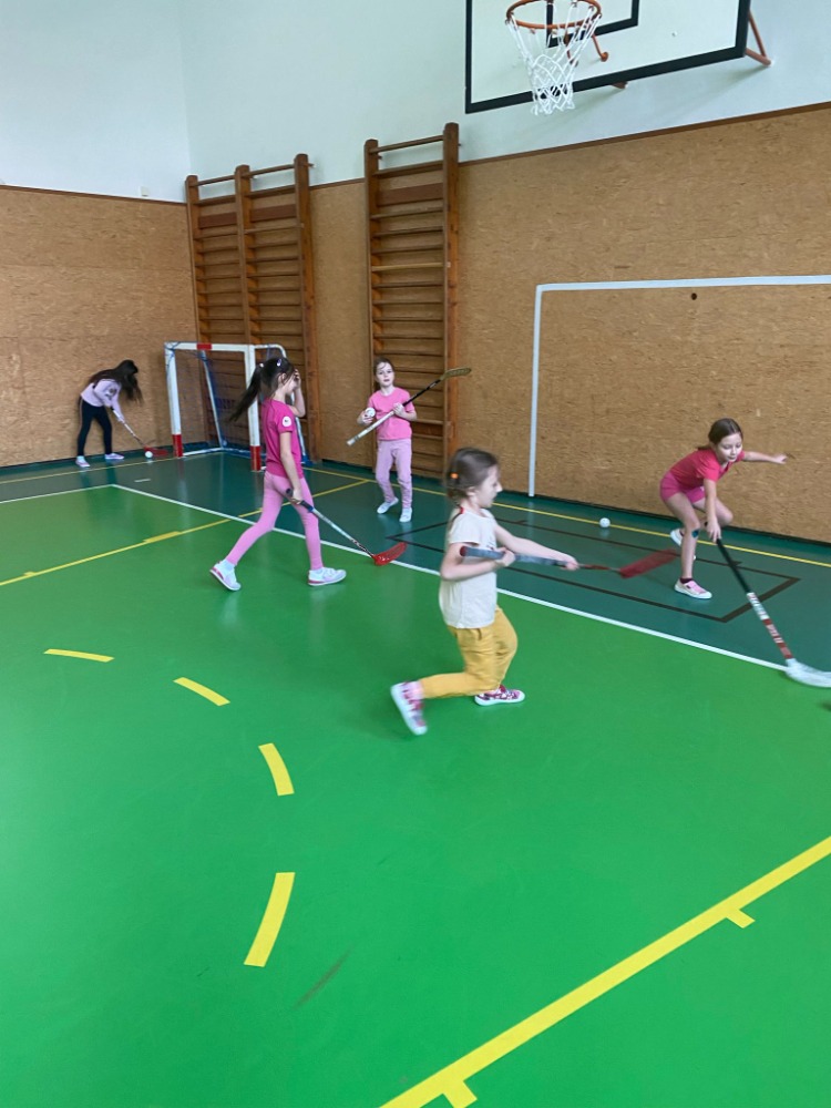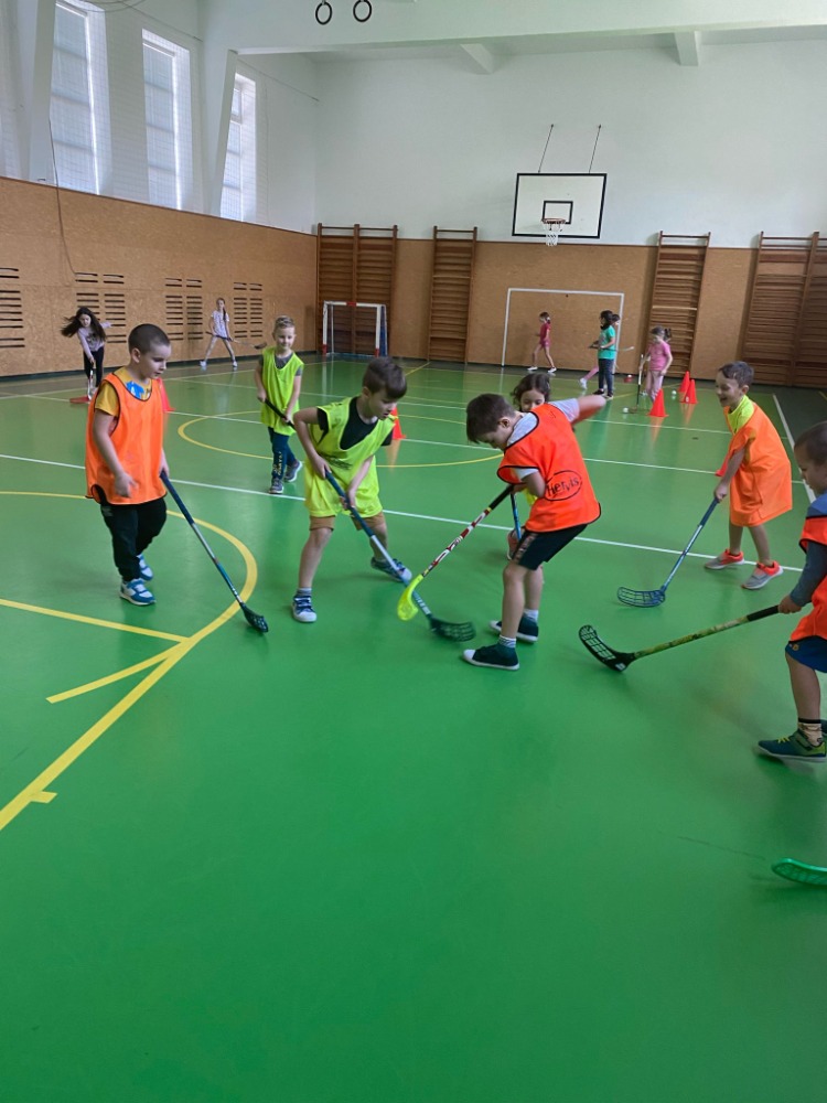 Prvňáčci se seznámili se základy florbalu.