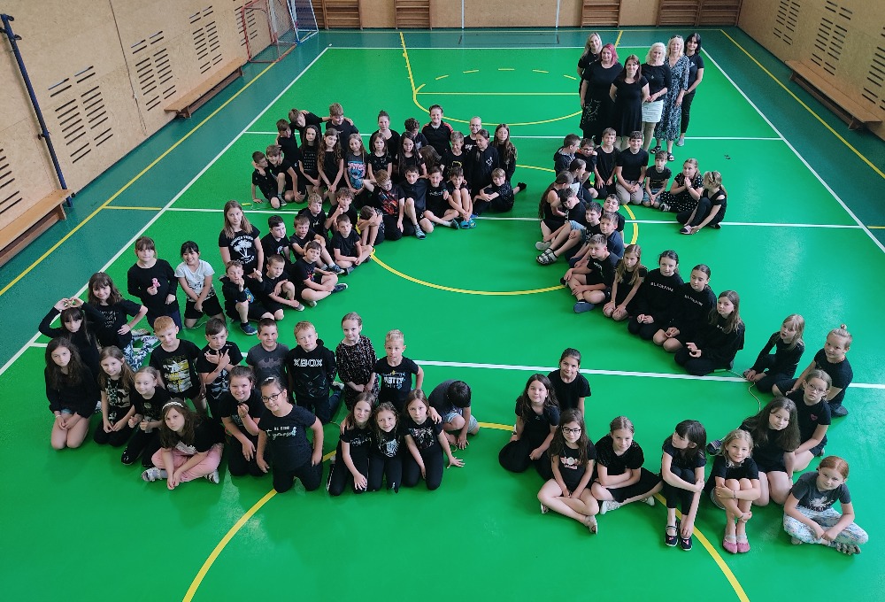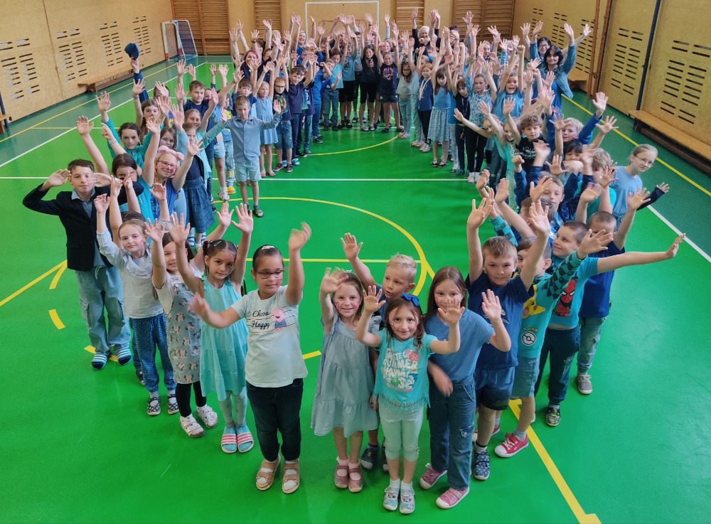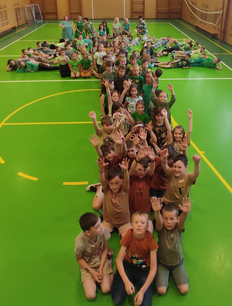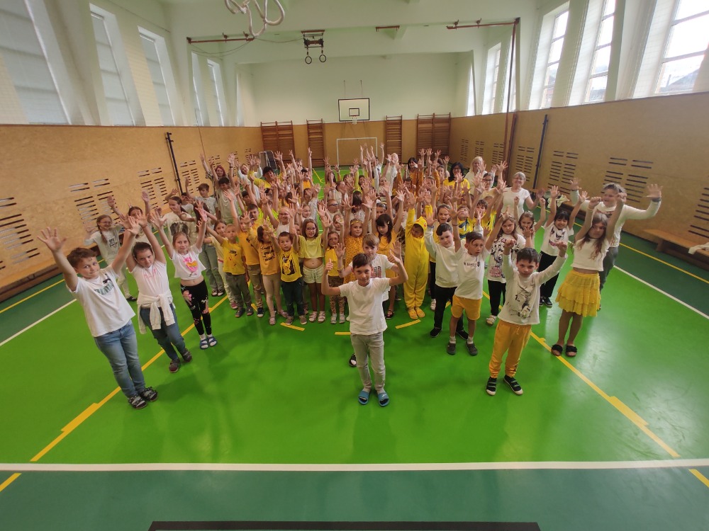 Děti byly skvělé a vytvořily tak denně jeden velký barevný obrázek (kapku, slunce, srdce, strom a zkratku ZŠ).