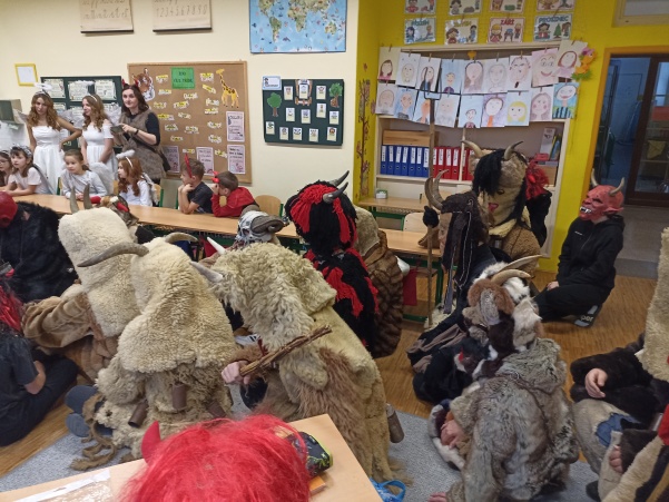 Po návštěvě mikulášské družiny našich šikovných deváťáků jsme pokračovali i ve vyučování putováním za svatým Mikulášem. V jazyku českém jsme si o něm více přečetli a splnili úkoly, v matematice nás čekali čertovské příklady a ve výtvarné výchově jsme kreslili mikulášskou družinu a při práci si i zazpívali. Mezitím nám zbyl ještě čas na sportovní chvilku, kdy jsme přeskakovali nebo podlézali mikulášskou berlu. Ale největší radost jsme stejně měli z balíčků, které jsme dostali od Mikuláše.
