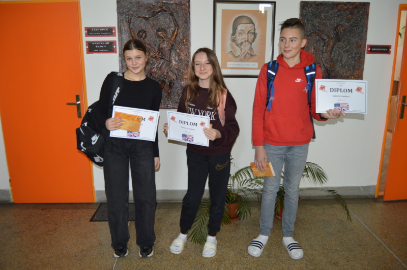 Na naší škole ve středu 7.2. proběhla olympiáda v jazyce anglickém pro 6. a 7. ročník. Celkem se školního kola zúčastnilo 9 žáků, na které čekala poslechová cvičení, gramatická cvičení a závěr patřil konverzačním okruhům. Nejlépe se nakonec vedlo Terce Zvonkové (7.B), která jen velmi těsně zvítězila před Lilien Kořenkovou (7.A) a třetí místo obsadil Jakub Láník (7.B). Tereza bude reprezentovat naši školu v okresním kole ve Zlíně.