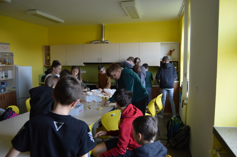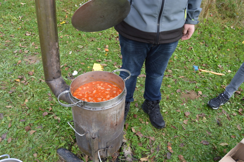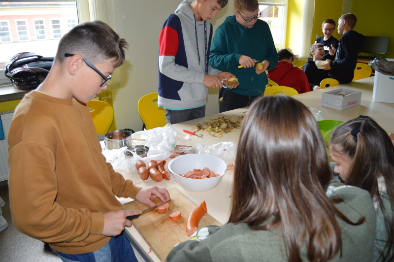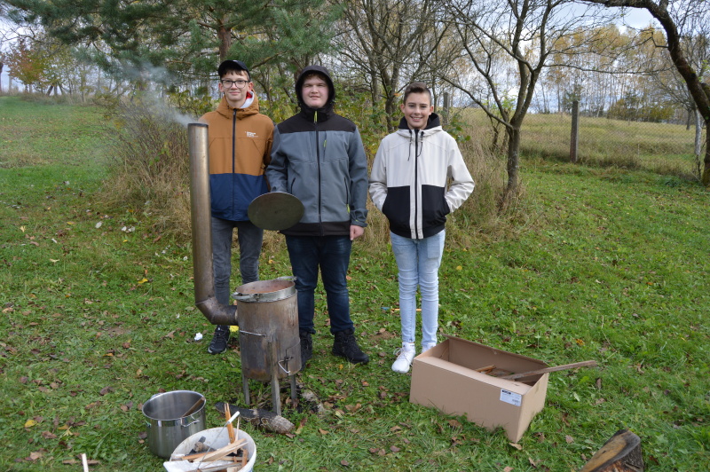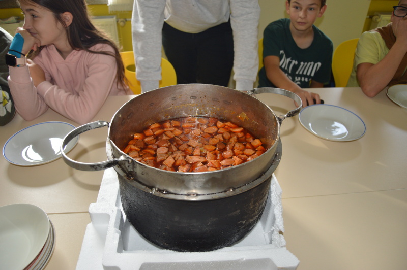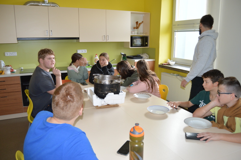 Nejde eletřina - nevadí, není oběd - nevadí. Žáci 7.B si ve čtvrtek s těmito problémy poradili na jedničku a uvařili si sami svůj oběd. Nápad Petra Váni se poprvé moc nesetkal s velkou podporou celé třídy, ale s postupem času se třída semkla, a tak se nápad mohl realizovat. Nejprve všichni nachystali ingredience nutné pro guláš a poté kluci roztopili pod kotlem, kde jsme mohli guláš uvařit. Guláš byl výborný a děti si tak dokázaly, že se o sebe budou moci postarat i sami.