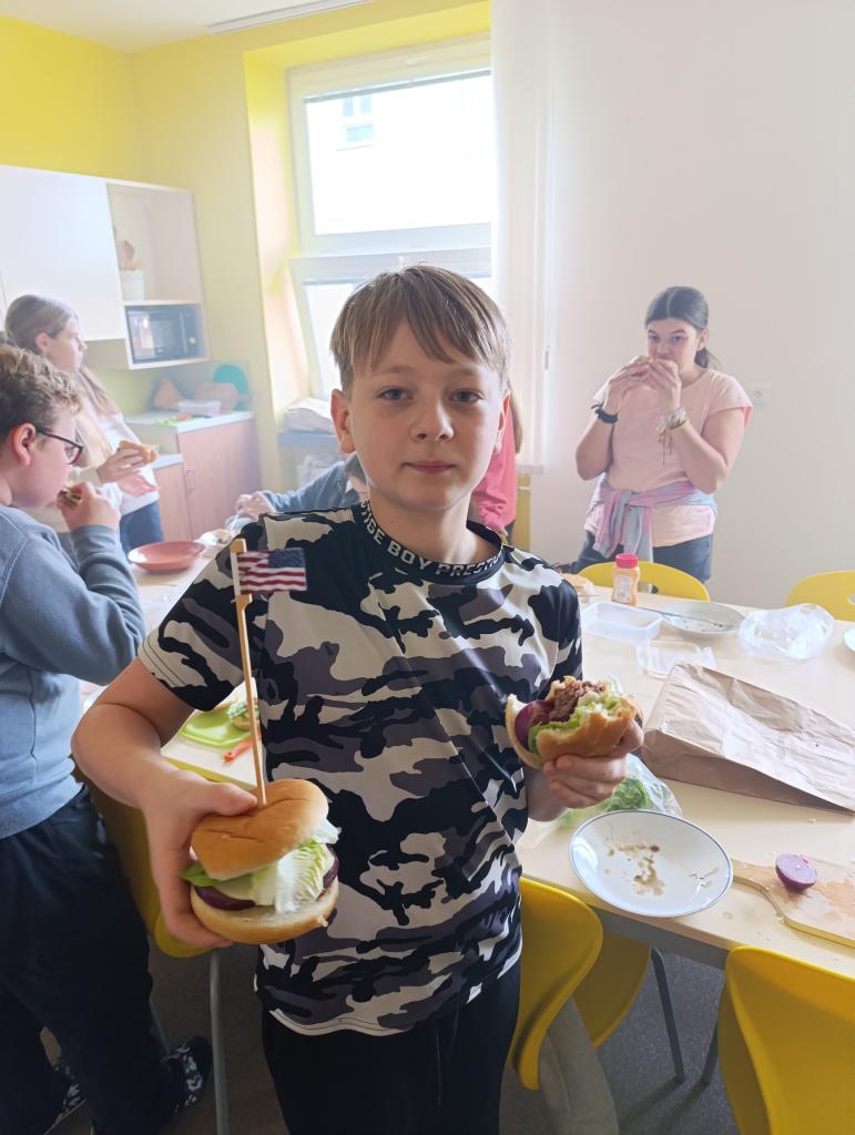 v rámci výuky USA jsme se s žáky 7. ročníku rozhodli zpestřit si hodinu a připravit si nejoblíbenější pokrm v USA - hamburger, na výsledky se můžete podívat ve fotogalerii.