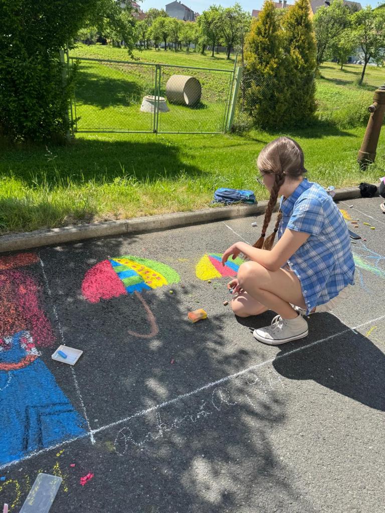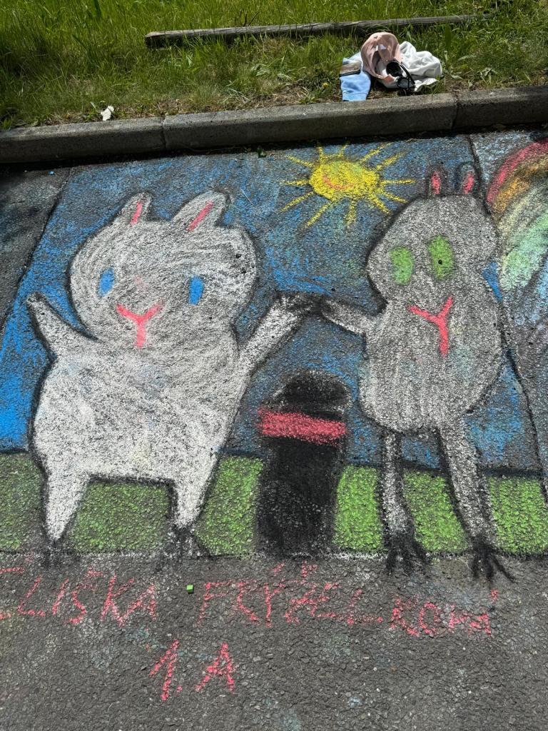 V neděli dopoledne 1. června 2025 se za krásného slunečného počasí před Základní školou v Újezdě sešlo více než čtyřicet dětí, které se v rámci oslavy Dne dětí zúčastnily " Malování na chodníku".