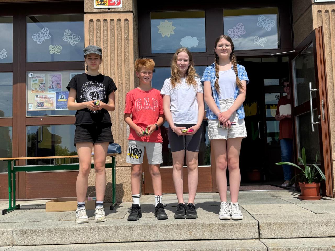 Z druhého stupně přišli tuto akci podpořit čtyři žáci: Sofie Belžíková, Štěpán Hrnčiřík, Alma Raková a Terezie Šimáková.
