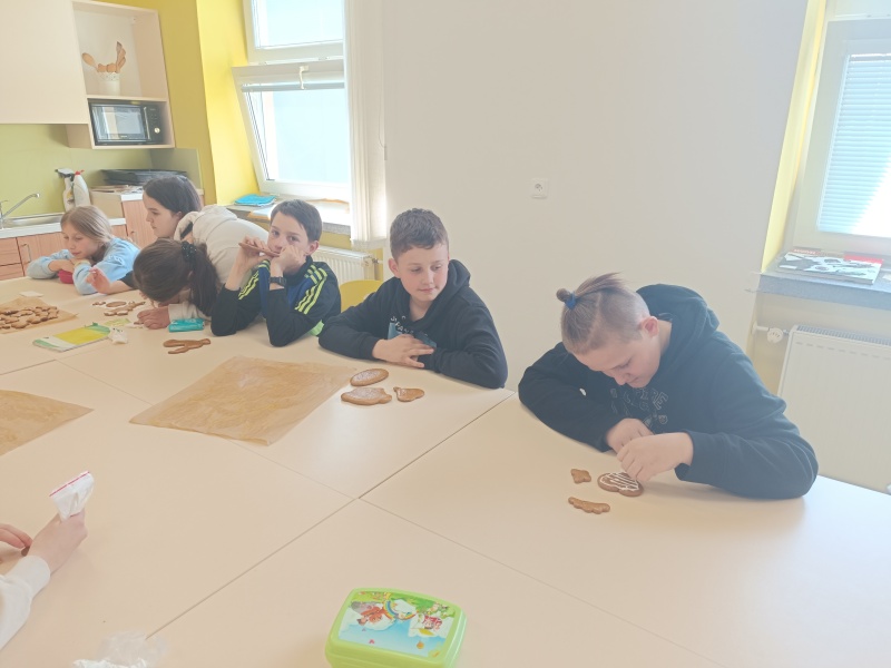 V rámci pracovních činností jsme si v dubnu upekli perníky, které jsme si zároveň i ozdobili cukrovou polevou a vzápětí snědli :-)