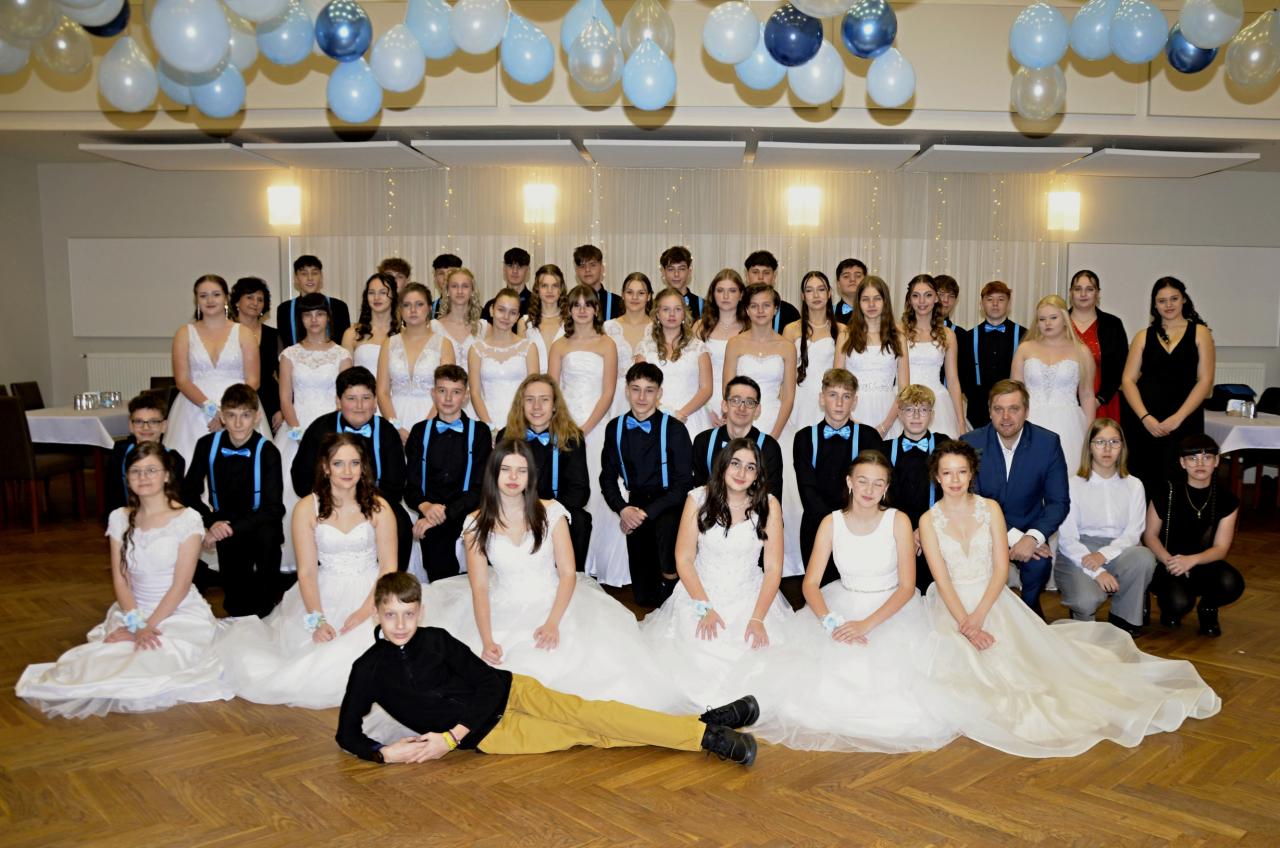 Dne 25. 1. 2025 se uskutečnil již tradiční Ples SRPŠ při ZŠ a MŠ Újezd, na kterém naši žáci 9. ročníku předtančovali polonézu. Jelikož máme v letošním roce velmi početný devátý ročník a párů začalo tančit 20, museli jsme změnit i taneční sál. Zvolili jsme krásný sál ve Vlachovicích, do kterého jsme se všichni pohodlně vlezli, a hlavně bylo dostatek místa pro naše tančící páry. K tanci a poslechu nám hrála kapela Těch 5 a myslím si, že se všichni po celý večer vesele bavili. I když nás v samotném závěru zradila doprava a někteří hosté museli déle čekat na odvoz, určitě budeme na ples velmi rádi vzpomínat.