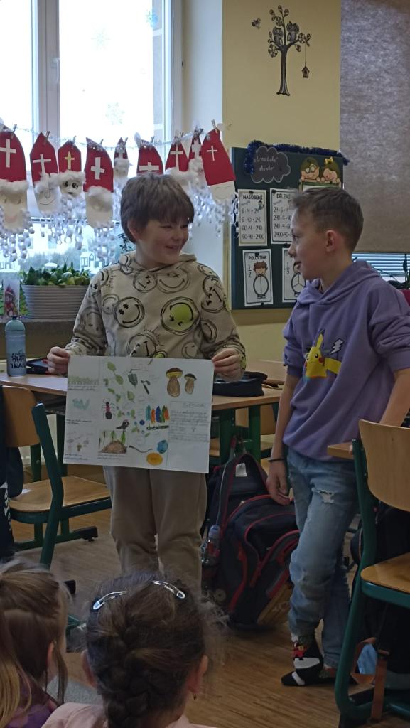 V rámci učiva přírodovědy se čtvrťáci zaměřili na ekosystém lesa. Využili poznatky z podzimního pozorování lesního ekosystému v blízkosti školy a doplnili je o informace z literatury. Prezentace projektů se dětem velmi podařila a všichni si zaslouží velkou pochvalu.