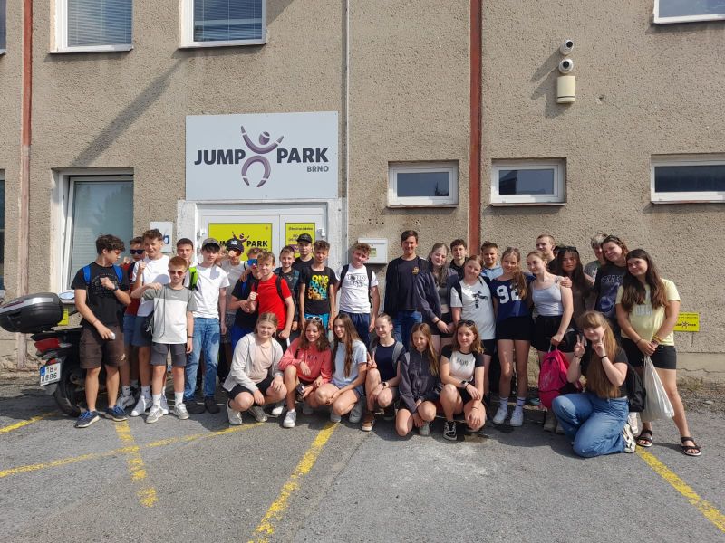 První zastávkou byl Jump Park Brno, kde se děti pořádně vyřádily. Po úvodní instruktáži si mohly vyzkoušet různé druhy trampolín, skoky do molitanové jámy nebo třeba souboj na kladině s pěnovými tyčemi.