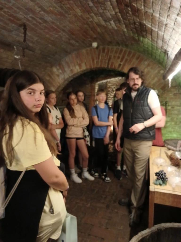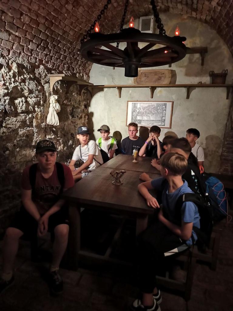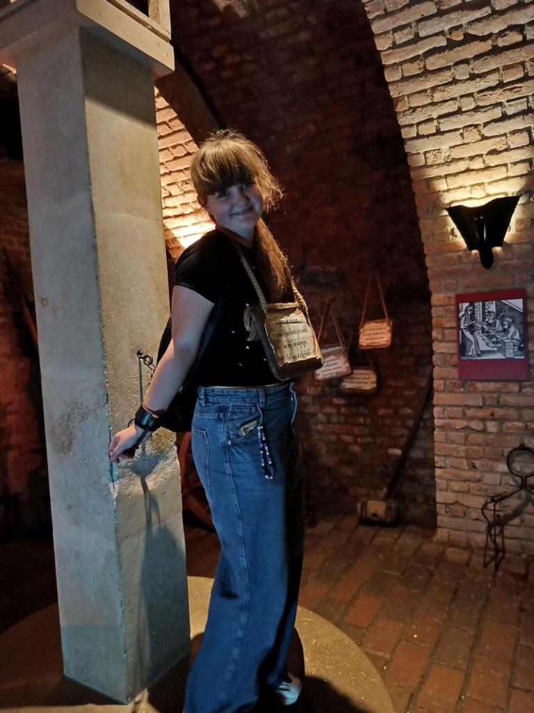 Poté jsme se přesunuli do brněnského podzemí. Navštívili jsme Labyrint pod Zelným trhem, kde nás čekala prohlídka tajemných chodeb a sklepů. Žáci se dozvěděli mnoho zajímavostí o tom, jak se v minulosti skladovalo zboží, léčily nemoci nebo jak lidé přežívali epidemie. Největší pozornost vzbudily historické mučicí nástroje a také alchymistická dílna.