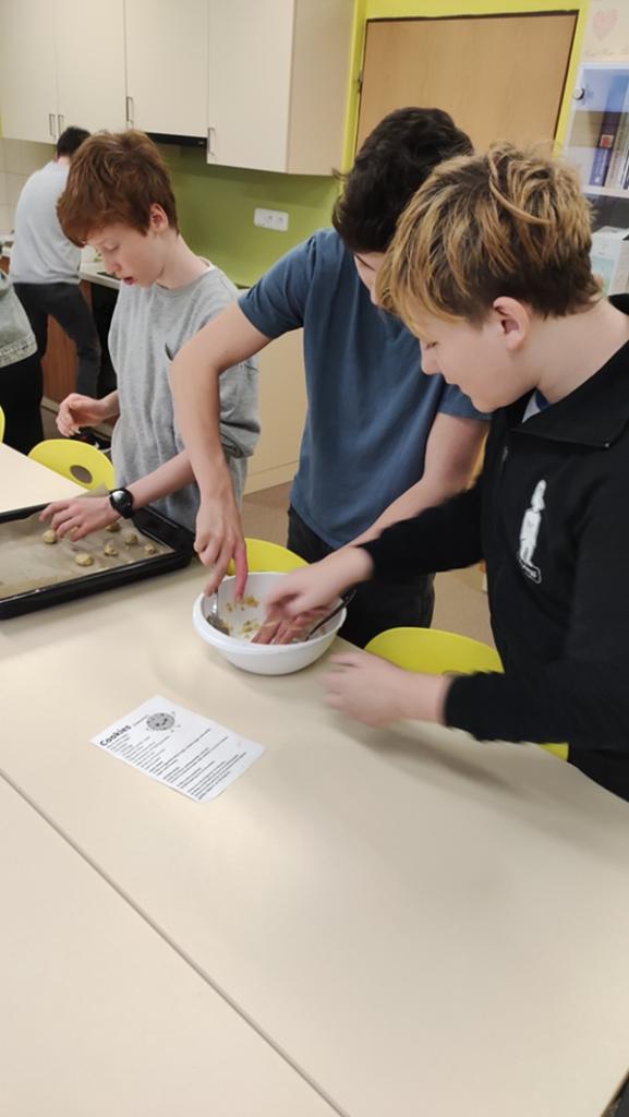 S žáky 7. ročníku jsme se rozhodli, že si řádné ukončení tématu food necháme na předvánoční čas. Žáci měli následovat jednoduchý recept na cookies v anglickém jazyce. Oběma skupinám se povedlo upéct výborné cookies. Důkazem toho je i to, že zmizely dříve, než jsme je stačili vyfotit.