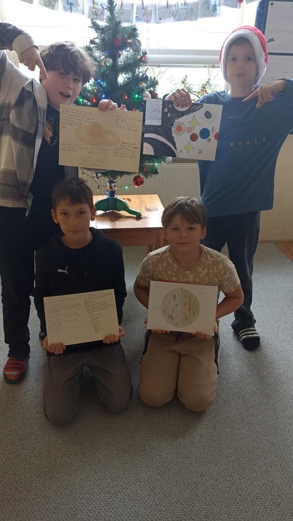 Naši páťáci se pustili do fascinujícího projektu o vesmíru. Zkoumali planety, hvězdy i galaxie a zjistili spoustu zajímavostí o tom, jak funguje náš vesmír. Součástí projektu byly vlastní plakáty. Děti pracovaly ve skupinách, sdílely nápady a učily se spolupracovat. Výsledkem je nejen spousta nových znalostí, ale i krásné práce, které si můžete prohlédnout na nástěnce u nás ve třídě.