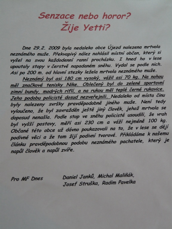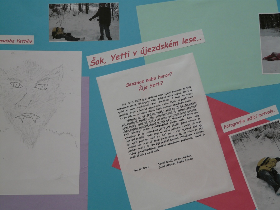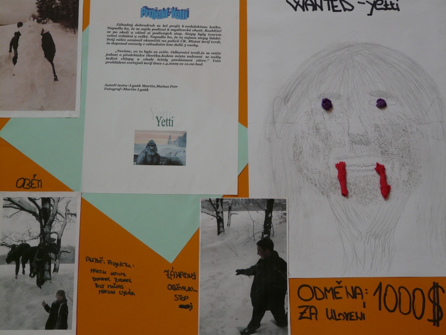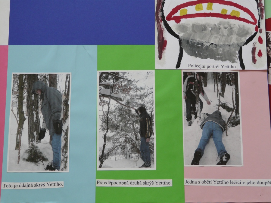 I v hodinách výtvarné výchovy rádi pracujeme na projektech. Žáci8.A se zapojili do projektu „Po stopách záhadného muže…“ A kdy jindy se vydat po stopách než právě v zimě. Stačilo nám teplé oblečení, dobrý nápad a foťák. Texty jsme vytvořili v teple – ve třídě, v hodinách českého jazyka.